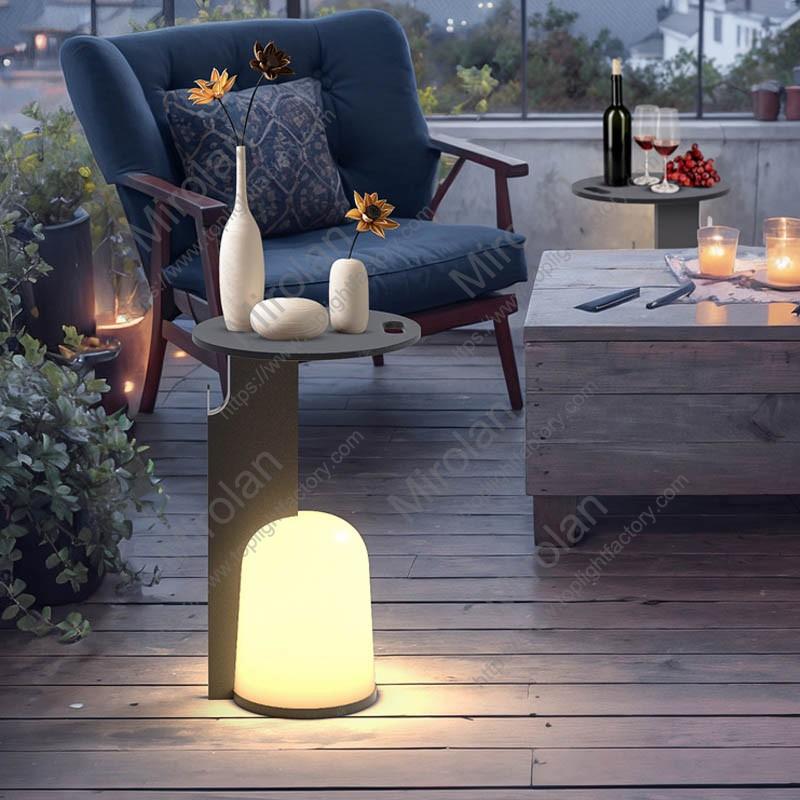 Outdoor Waterproof IP65 Round Side Metal Black Table Oval Warm LED Lamp Patio Tea Yard Balcony Solar Charging Garden Lawn Light